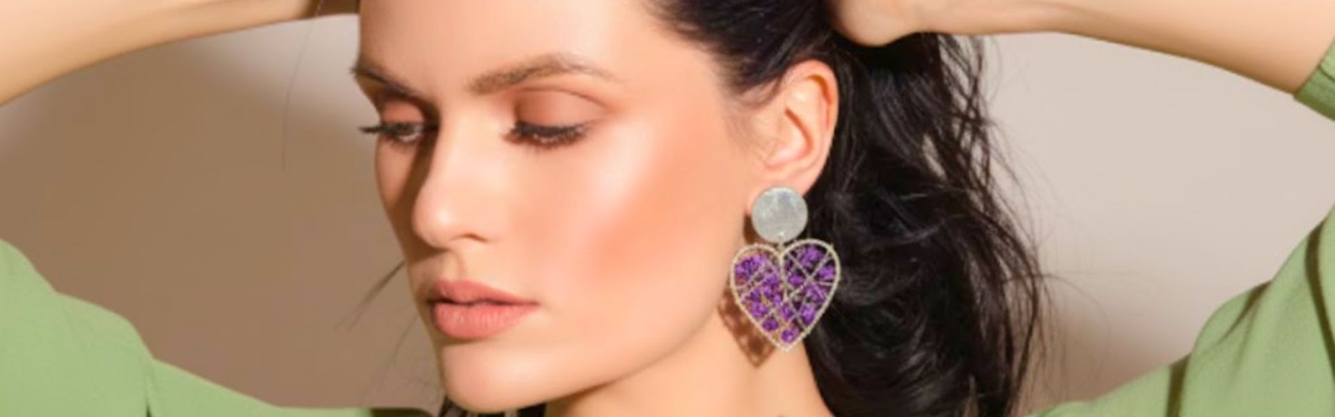 Aros bañados en plata, con cristales lilas y morados
