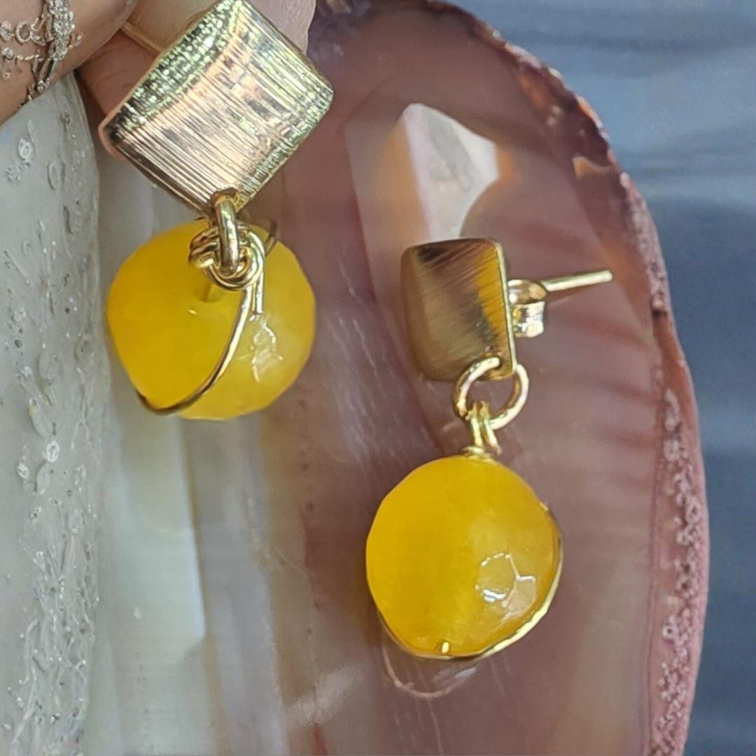 Aros Bañados En Oro Piedra Gris